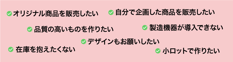 私たちHMK TRADINGでは、お客さまからのご要望にできる限りにお応えし、お客様の「作りたい」をカタチにしたいと考えております。